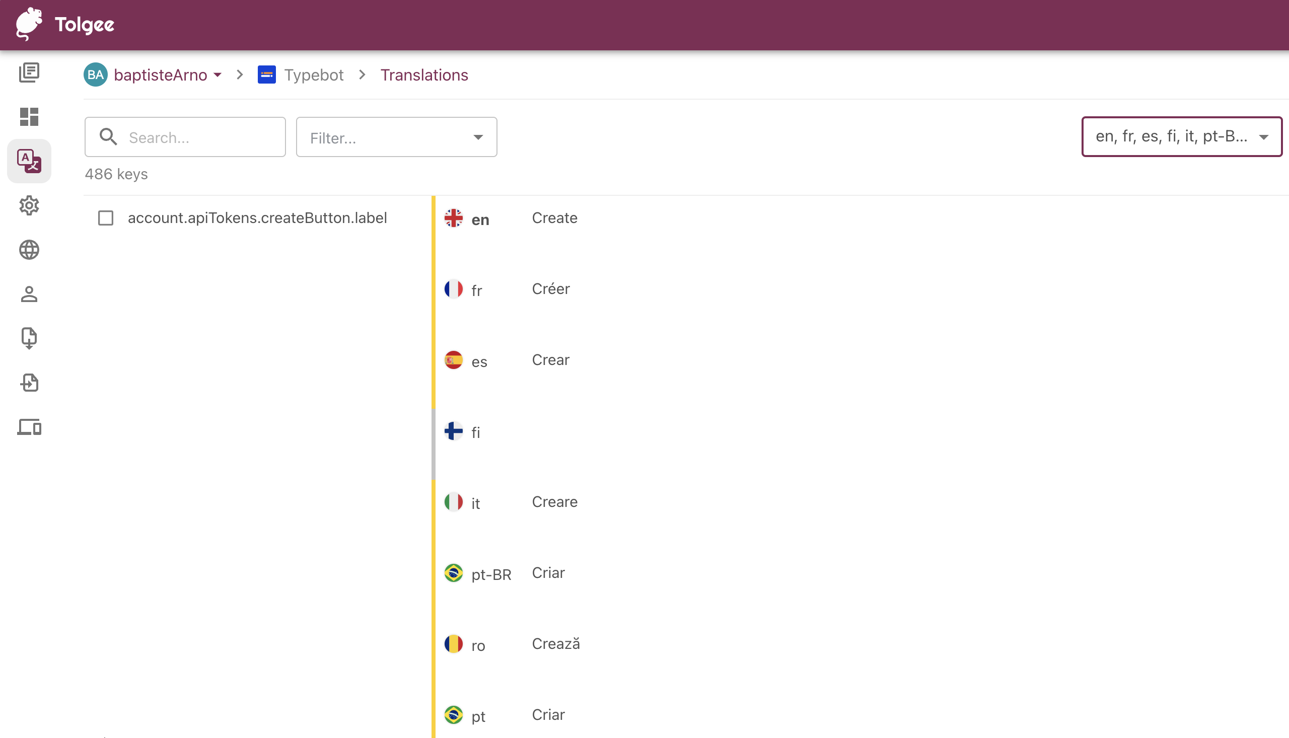 You speak a language other than English? You can help us translate the application! And it’s easy! We use Tolgee to manage translations. It’s a great tool that allows you to translate directly in the browser.