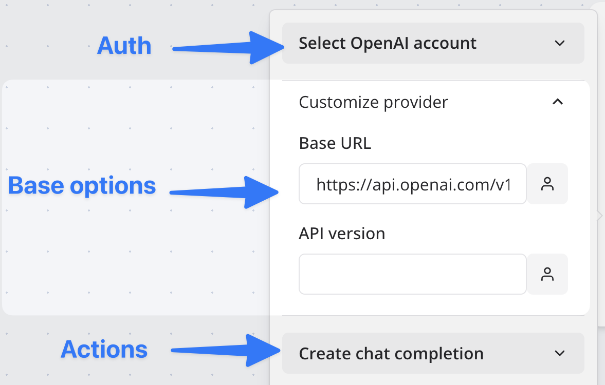 https://docs.typebot.io/editor/blocks/integrations/openai)Provide it if all the block actions share the same properties. See