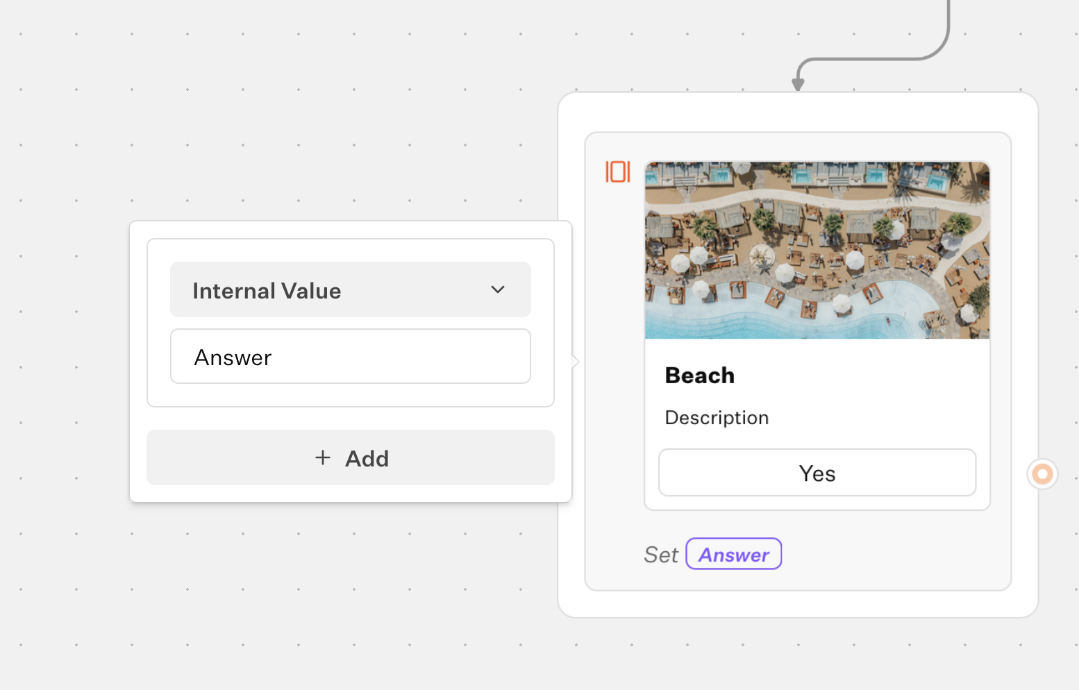 - Internal Value: a hidden value defined per card, ideal for stable identifiers (IDs, slugs). Configure it in a card’s settings under “Internal value”.