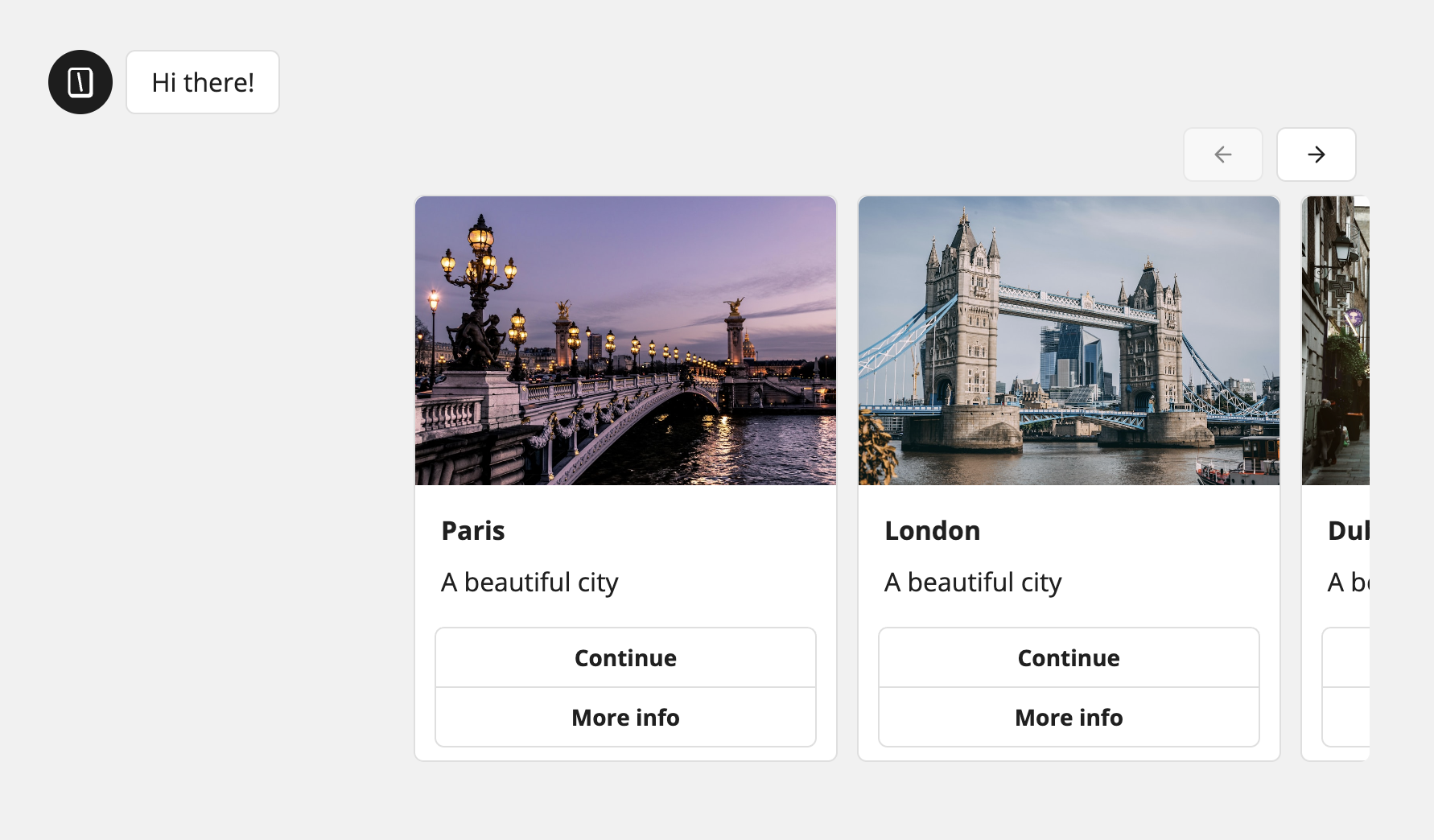 The Cards input block allows you to display a list of cards in a carousel.