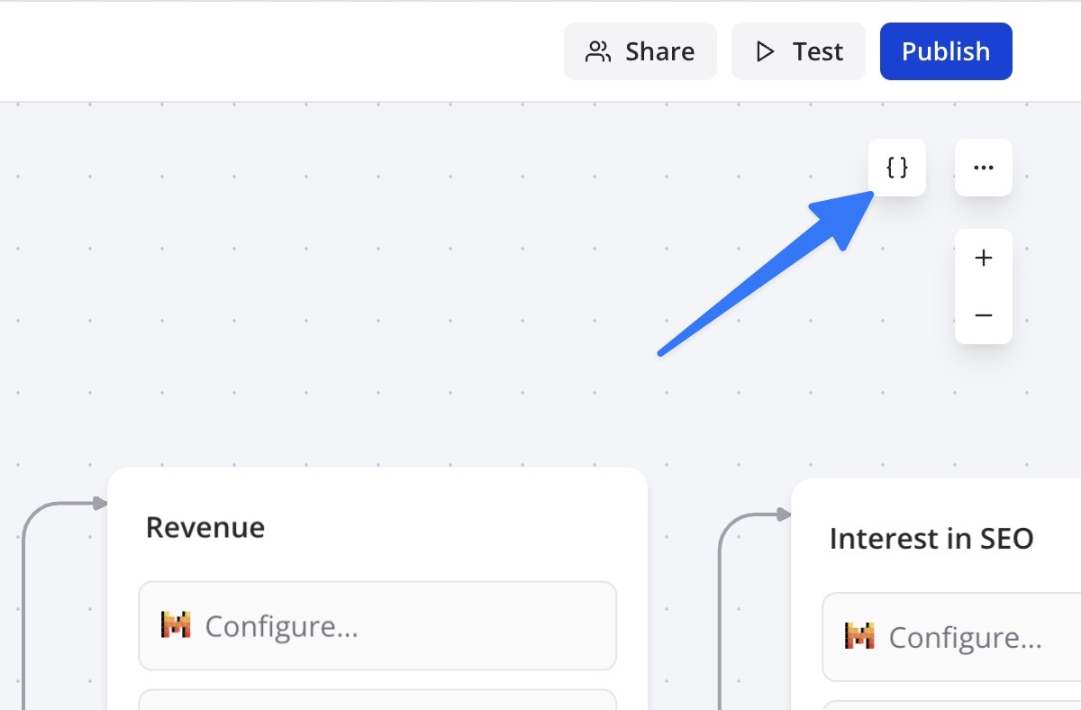 You can access the variables panel by clicking on the “Variables” button in the top right corner of the editor: